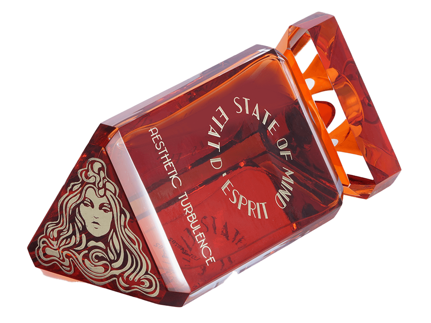 STATE OF MIND 100ml perfume bottle represents a unique jewel of great value. Hand-polished and crafted in the Art Deco style, the bottle is engraved with hot gold, and its crystal cap is magnetic.