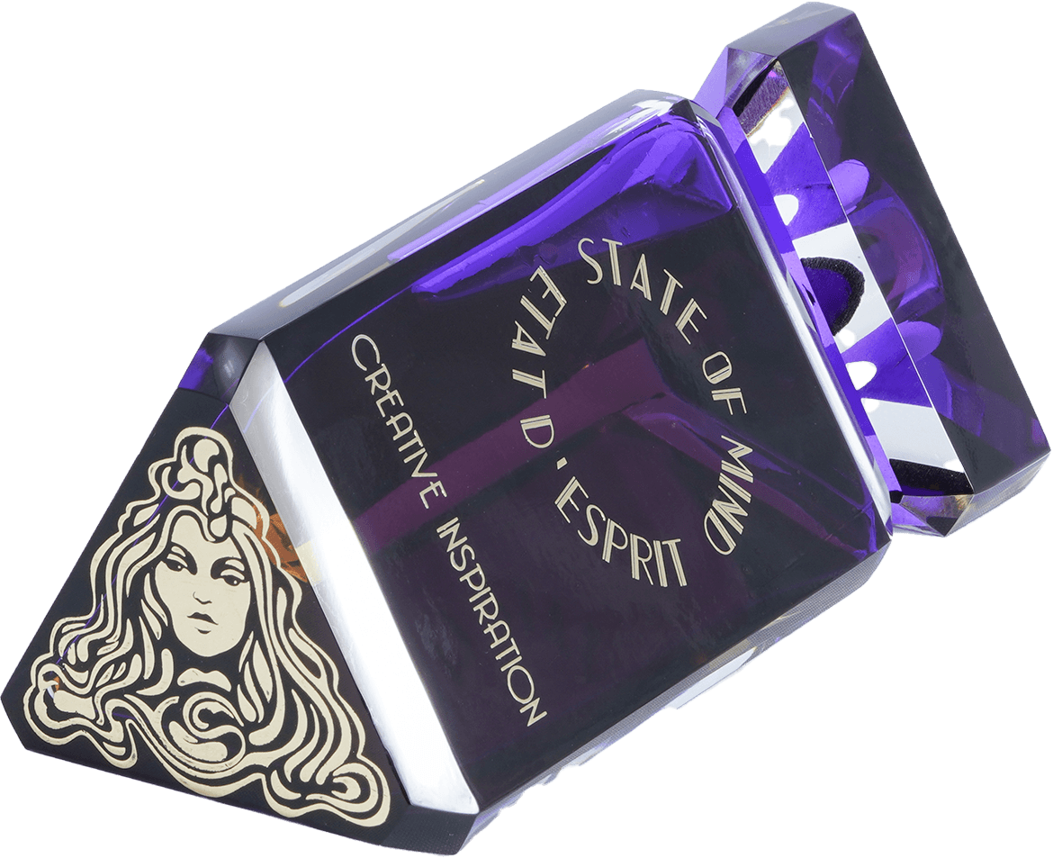 STATE OF MIND 100ml perfume bottle represents a unique jewel of great value. Hand-polished and crafted in the Art Deco style, the bottle is engraved with hot gold, and its crystal cap is magnetic.