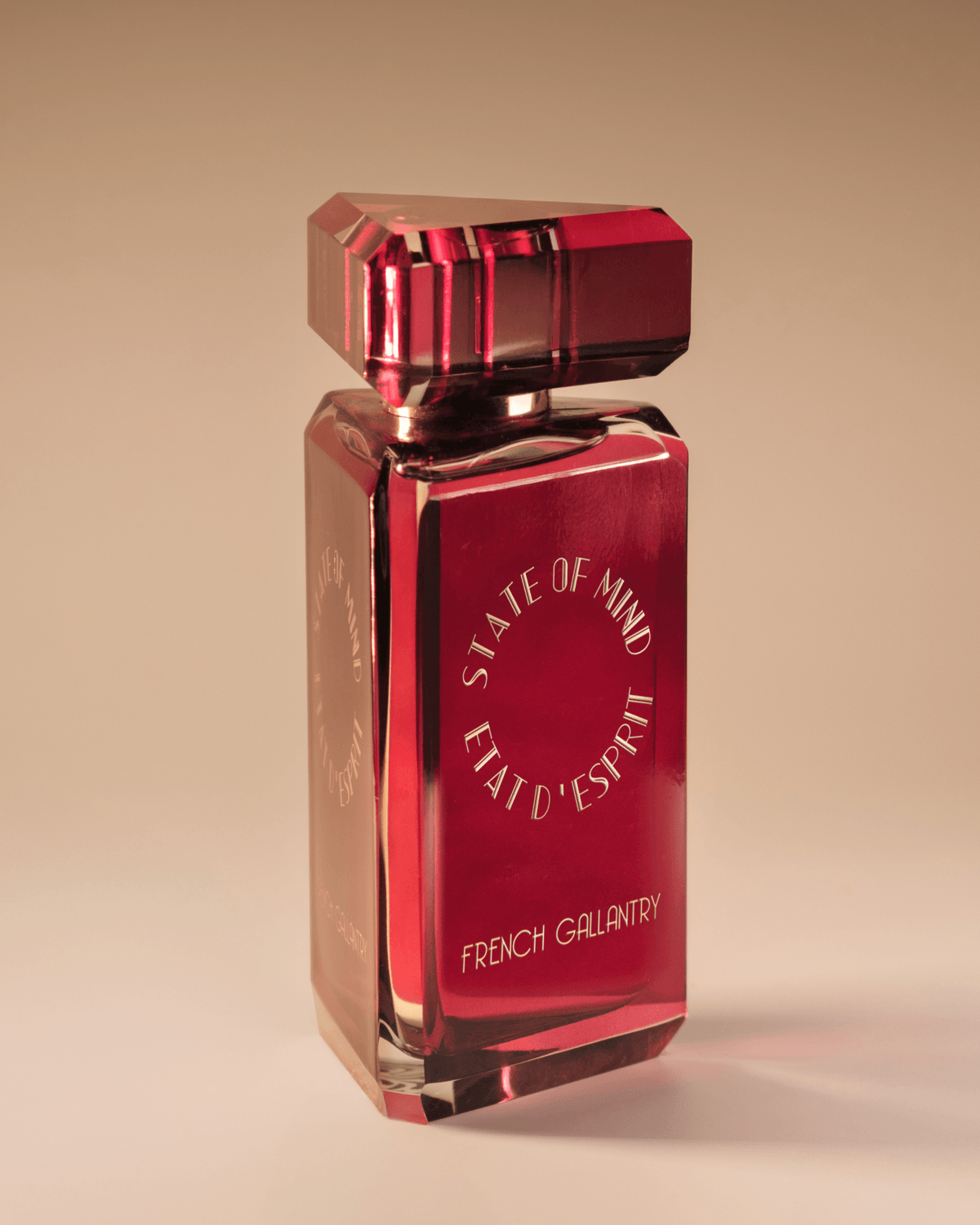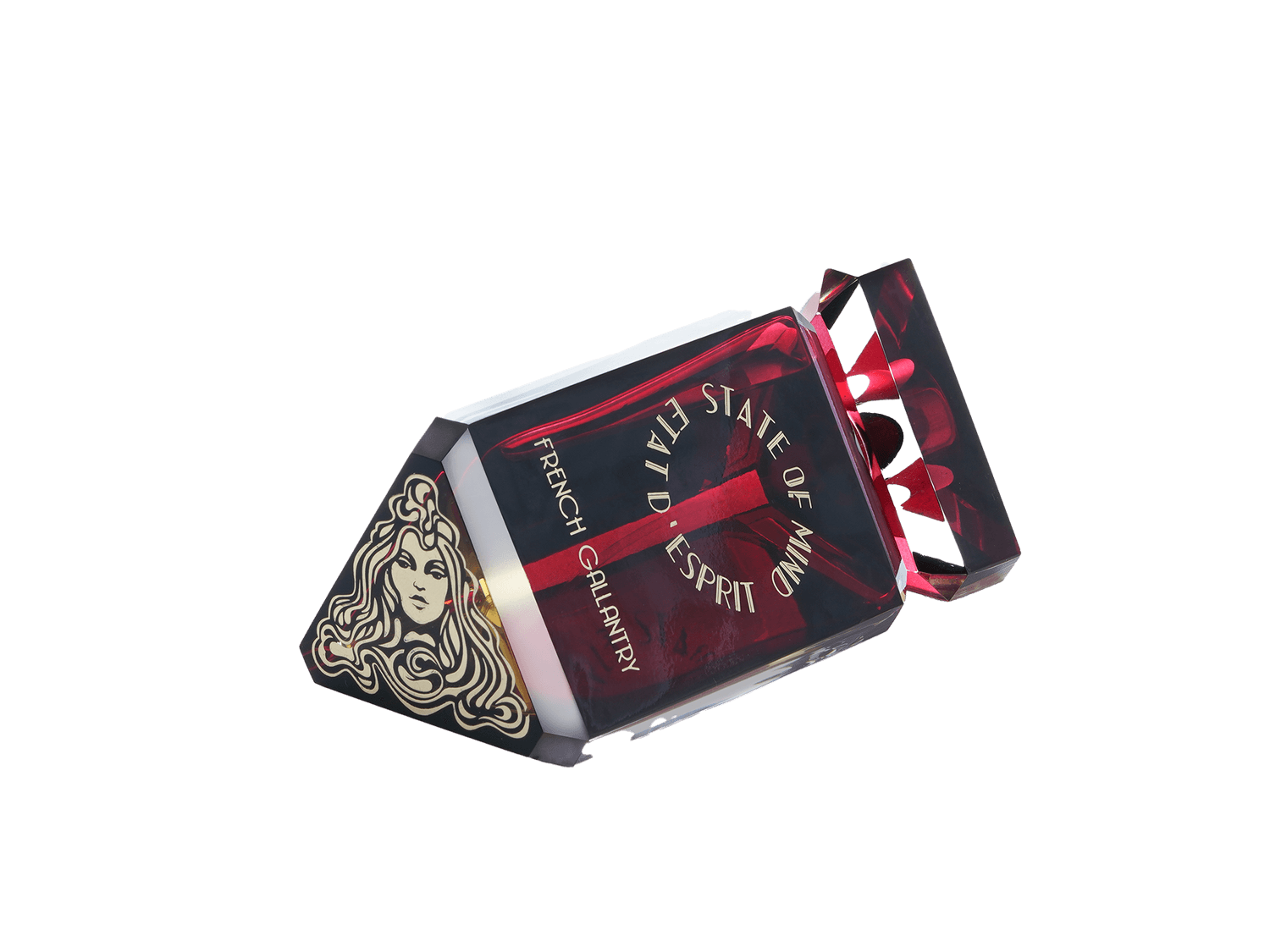 STATE OF MIND 100ml perfume bottle represents a unique jewel of great value. Hand-polished and crafted in the Art Deco style, the bottle is engraved with hot gold, and its crystal cap is magnetic.