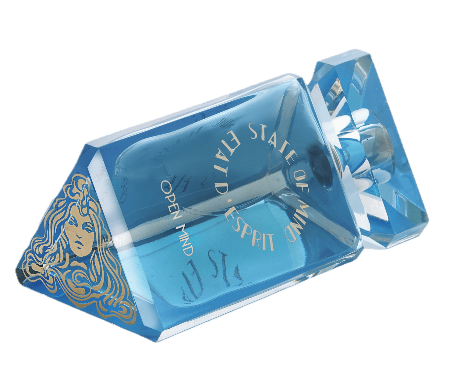 STATE OF MIND 100ml perfume bottle represents a unique jewel of great value. Hand-polished and crafted in the Art Deco style, the bottle is engraved with hot gold, and its crystal cap is magnetic.