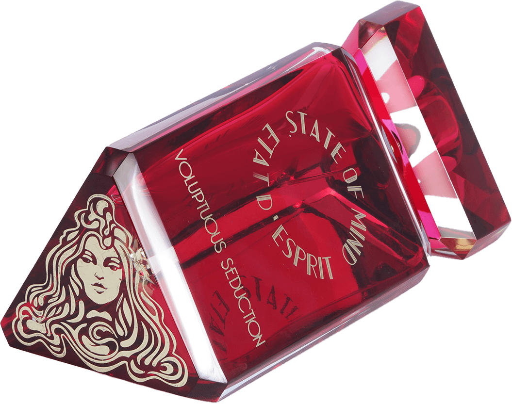 STATE OF MIND 100ml perfume bottle represents a unique jewel of great value. Hand-polished and crafted in the Art Deco style, the bottle is engraved with hot gold, and its crystal cap is magnetic.